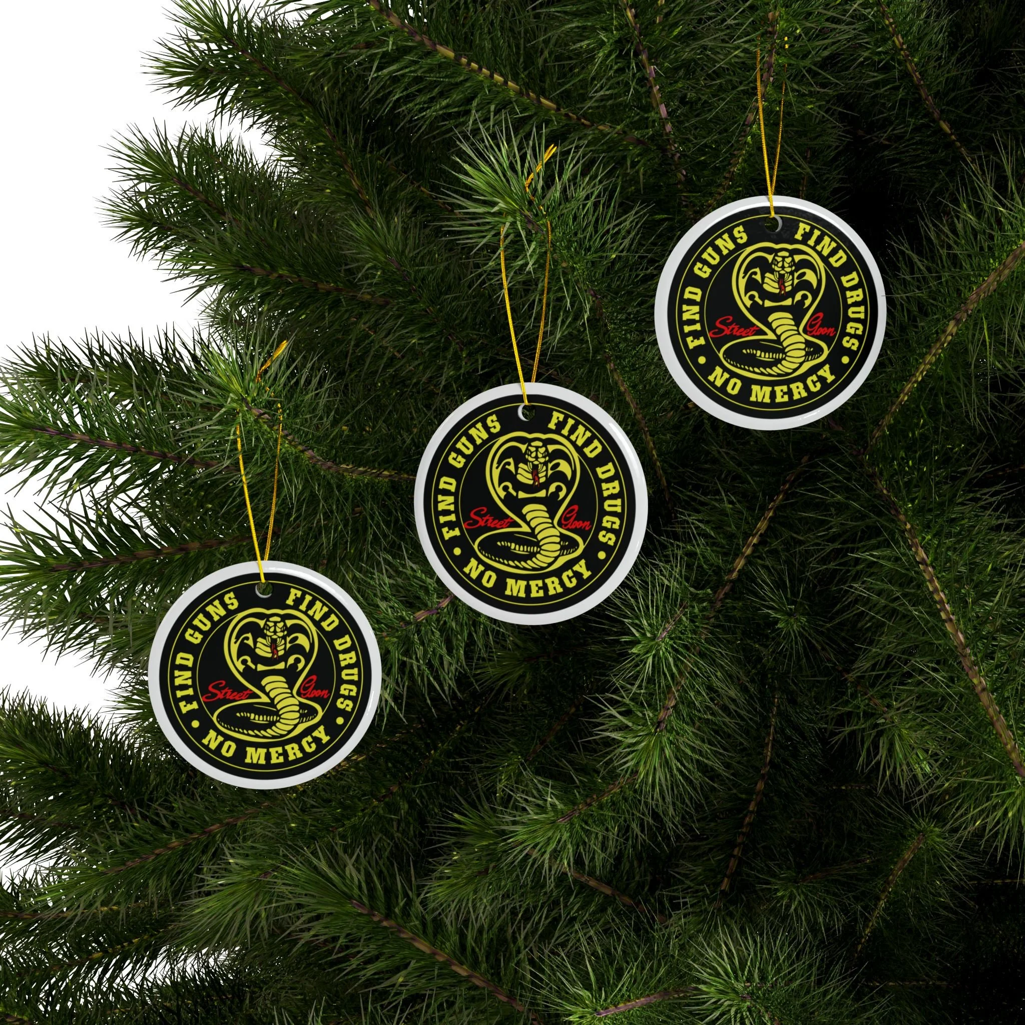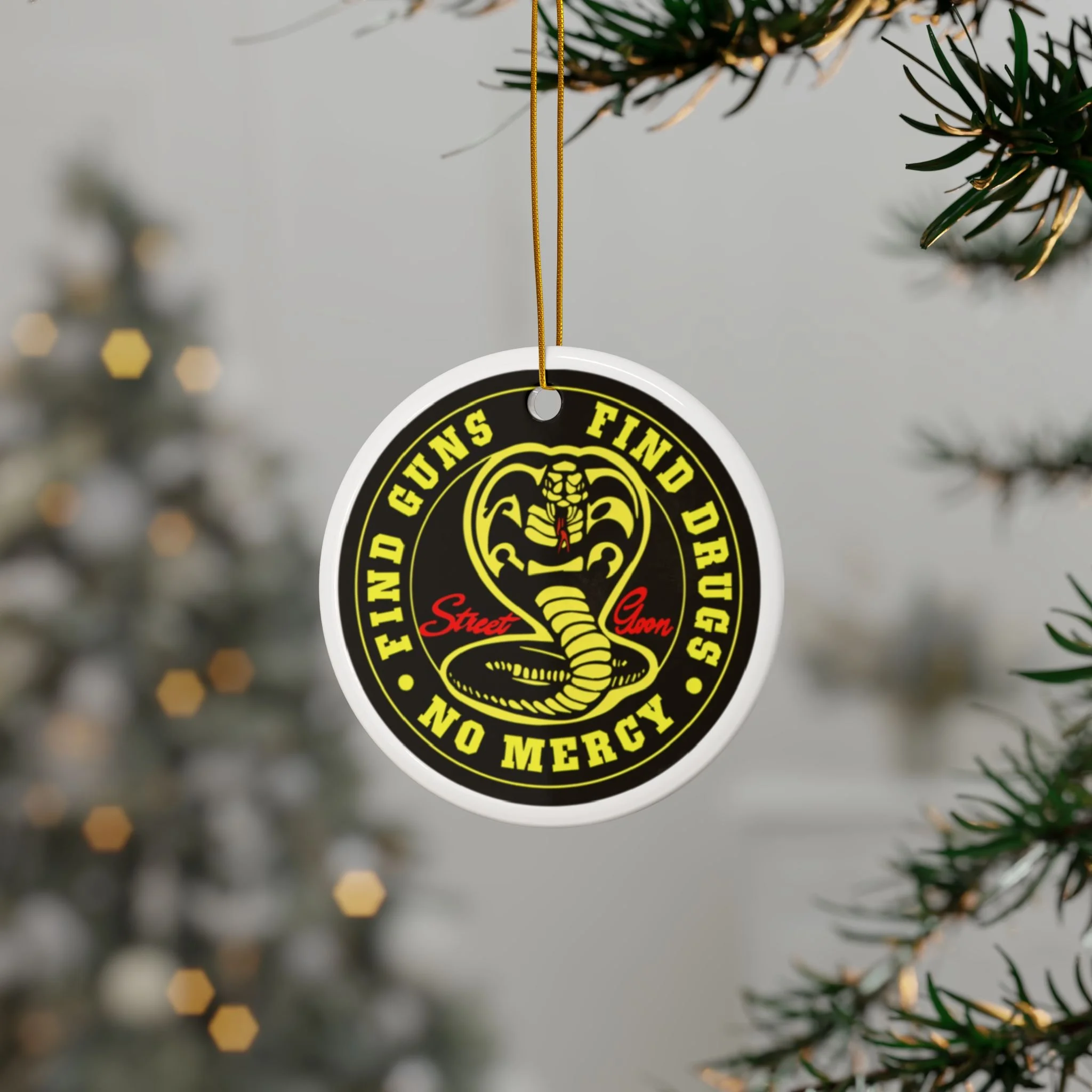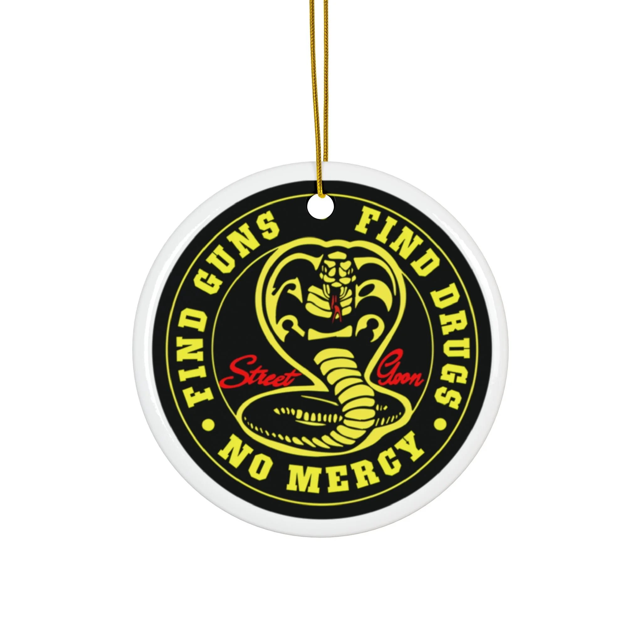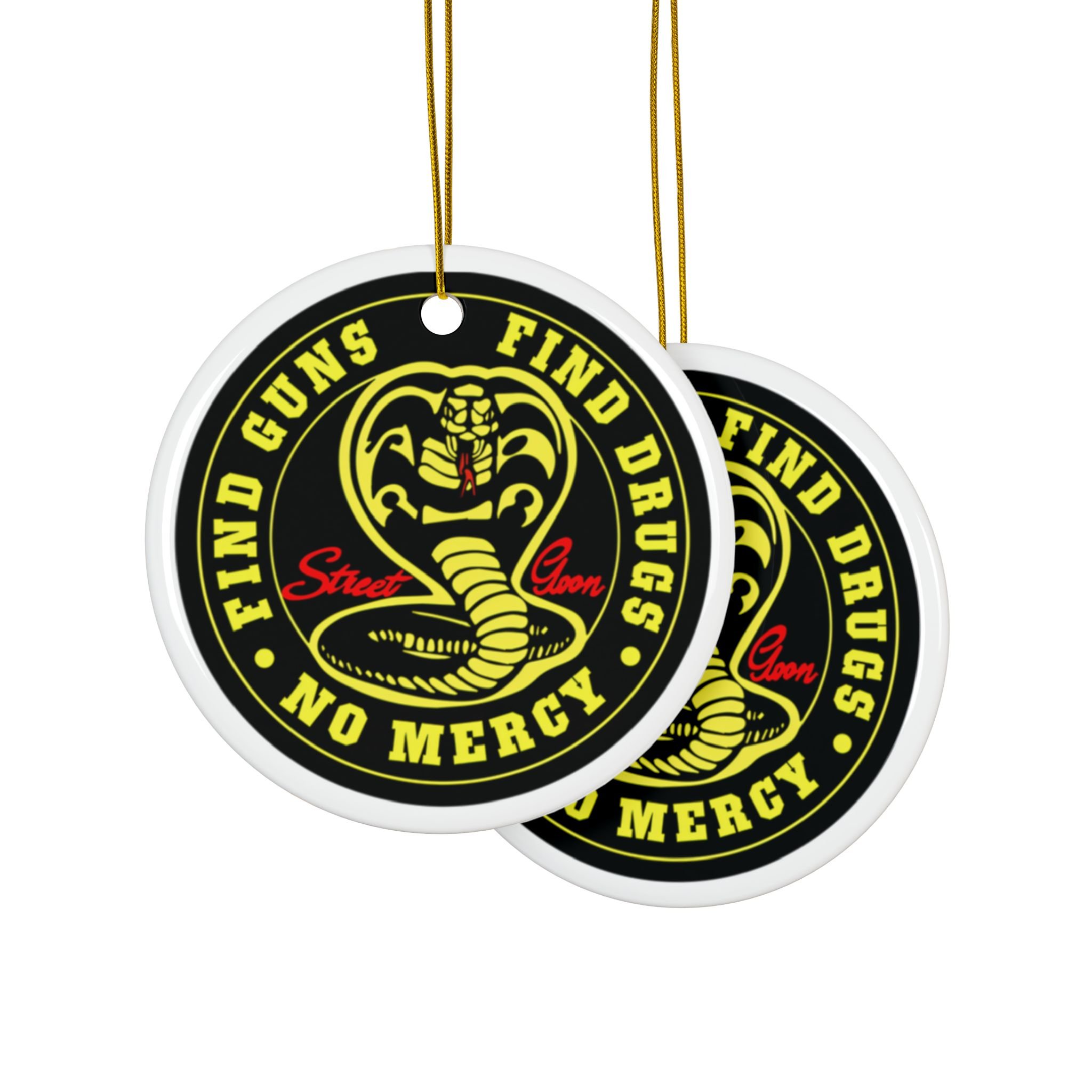 Cobra Emblem Ceramic Ornament — “Find Guns Find Drugs No Mercy” Double‑Sided Holiday Decor