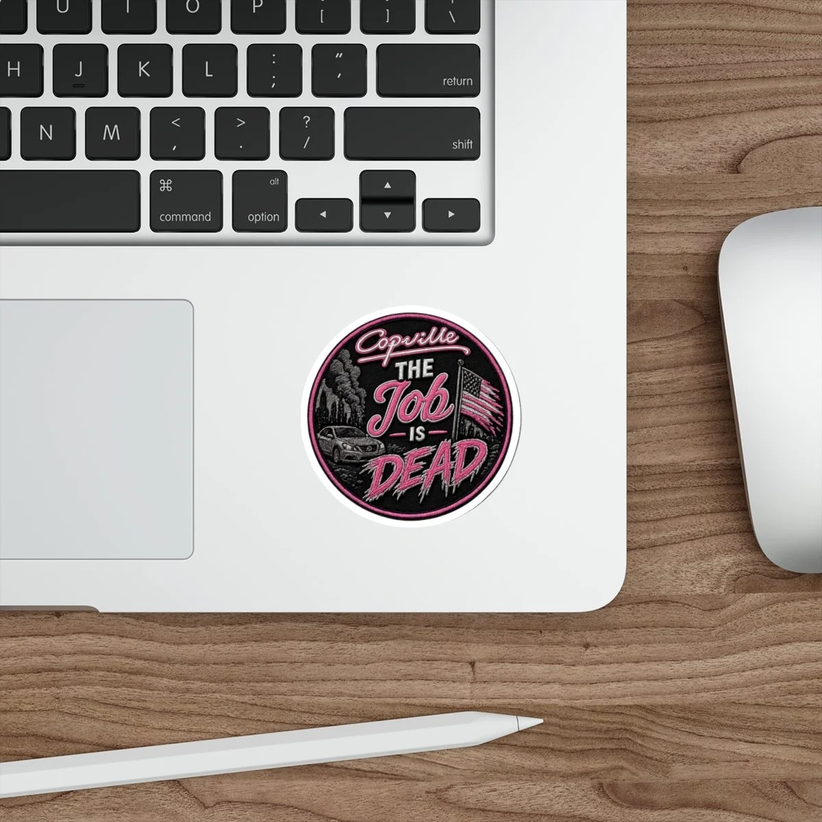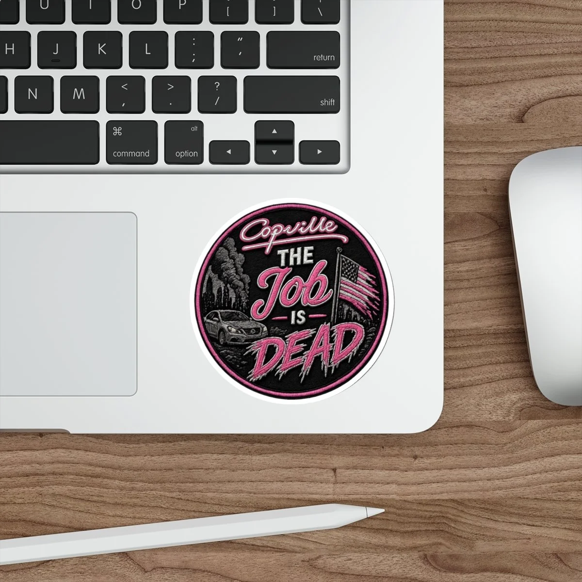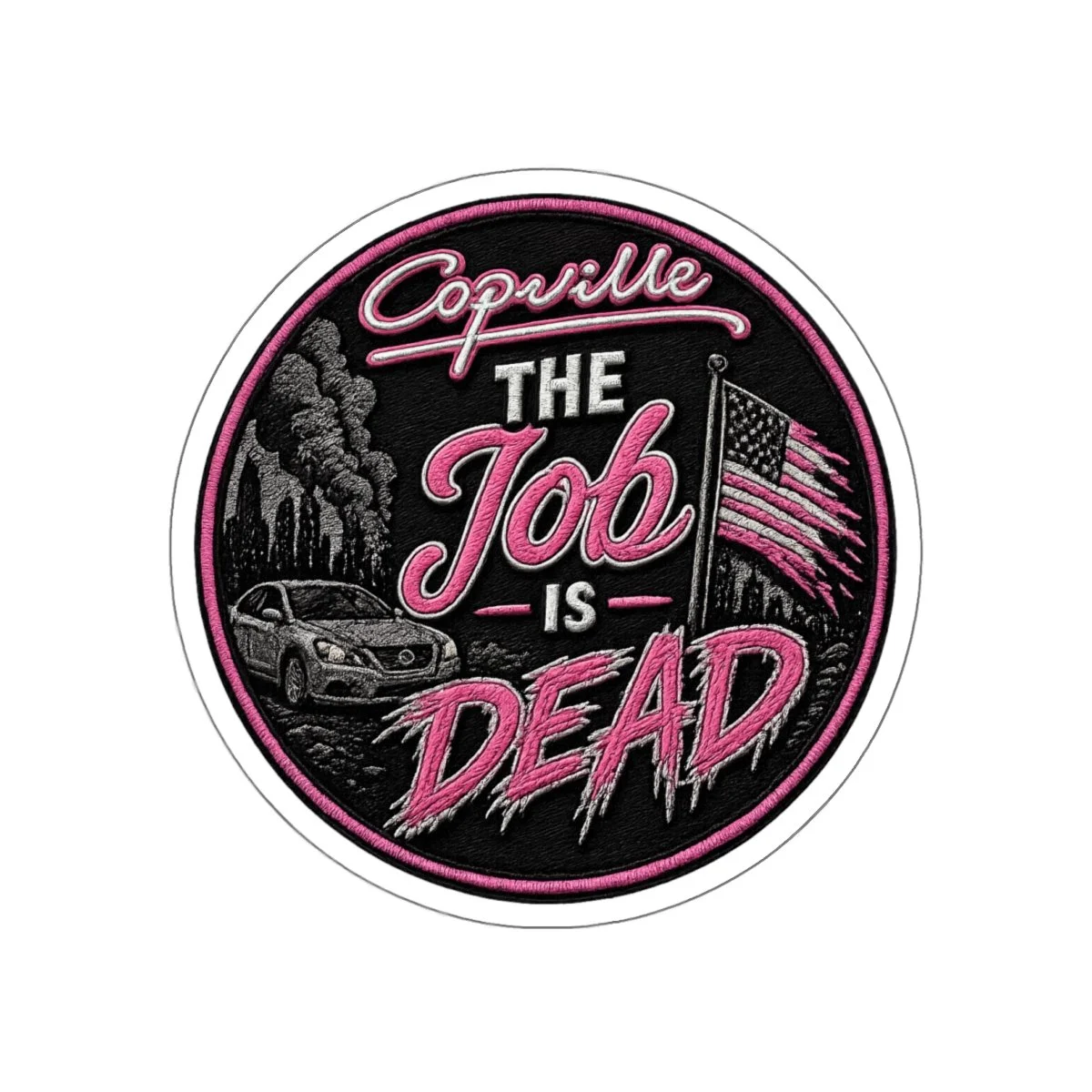 Die-Cut Sticker — “Copville The Job Is Dead” Pink Retro Patch Design