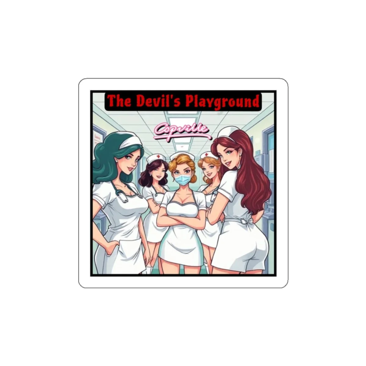 Retro-Inspired Nurse Themed Die-Cut Stickers – ‘The Devil's Playground’