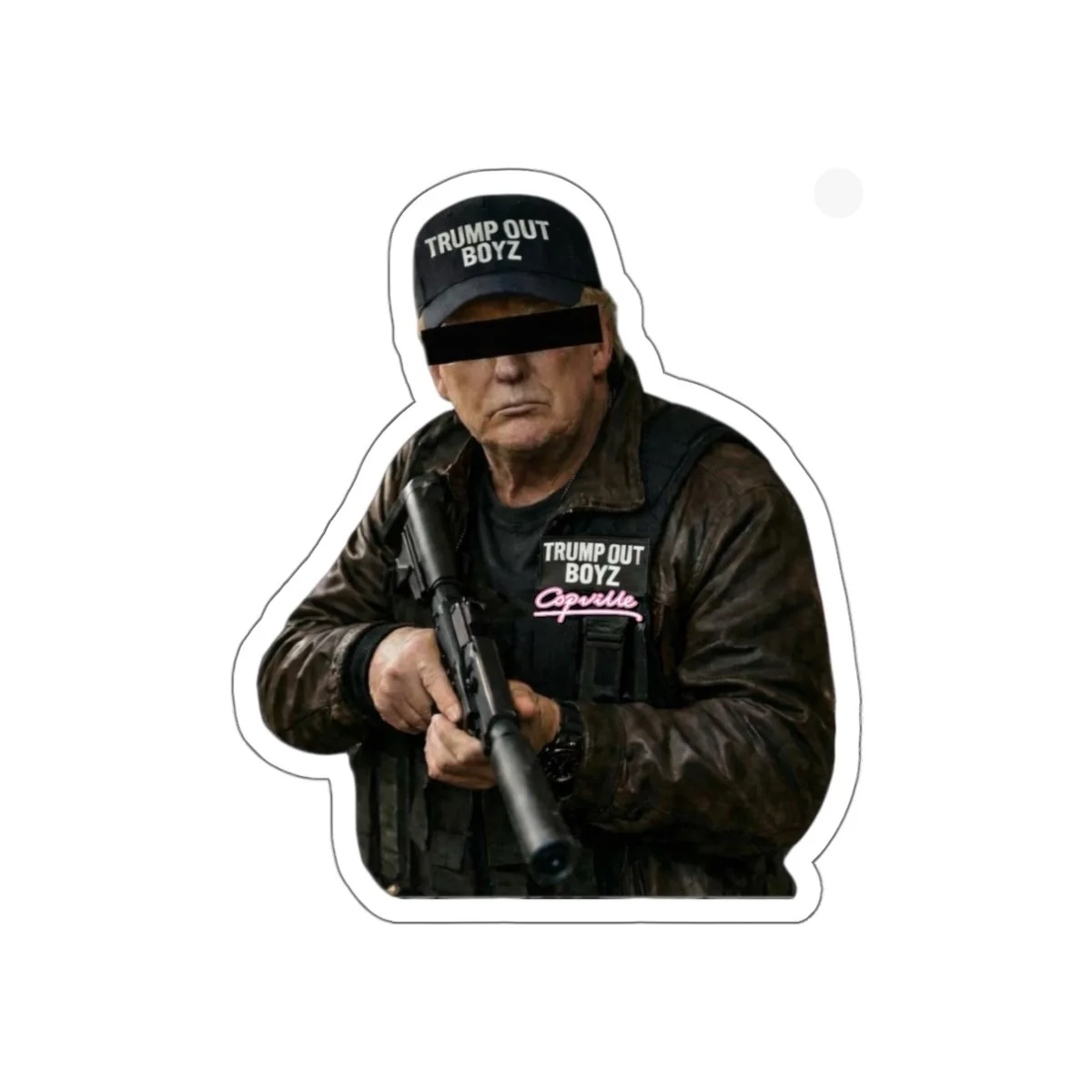 Trump Out Boyz Sticker — Die-Cut Political Sticker with Armed Figure